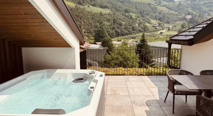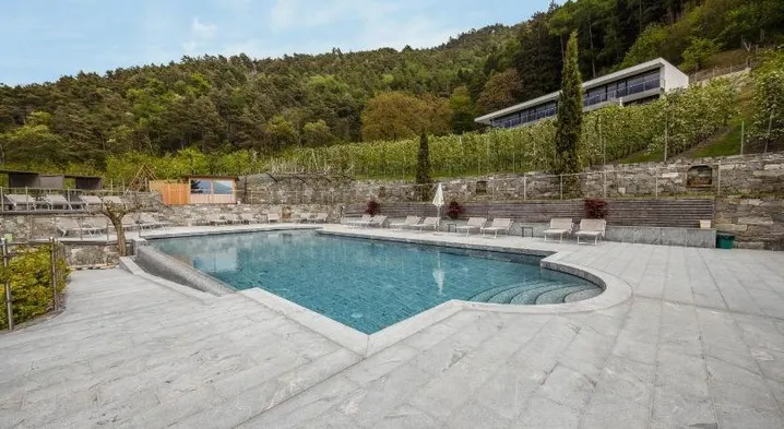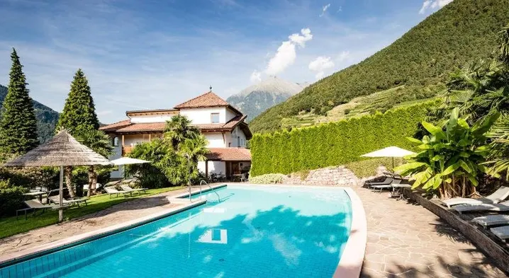 moderne Ferienwohnungen in Algund, Panoramablick und Pool am Algunder Waalweg