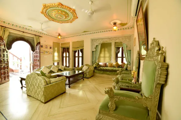Traditional vacation home in Udaipur with outdoor pool, air conditioning, and cycling activities for adults only.