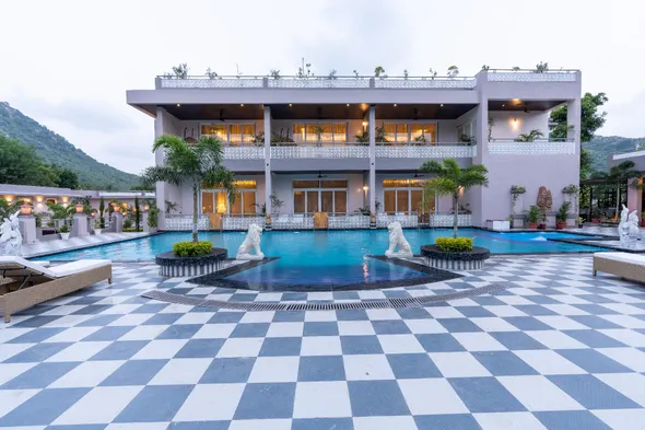 Luxury resort with outdoor pool, full-service spa, and exquisite dining options in Udaipur.