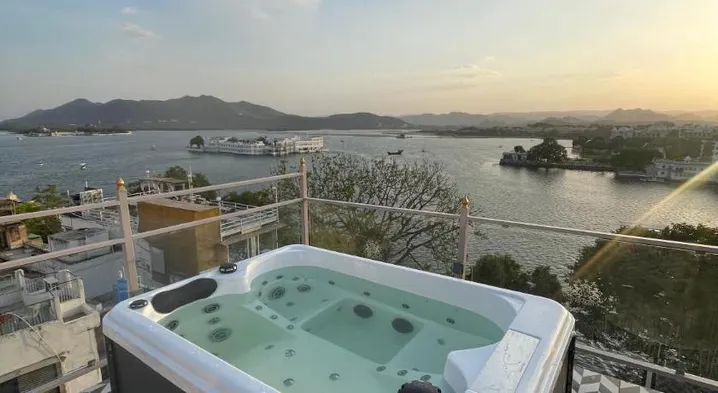 Relax in a hotel featuring a hot tub, terrace, and restaurant near City Palace Museum in Udaipur.