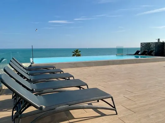 Two-room apartment with rooftop pool by the sea