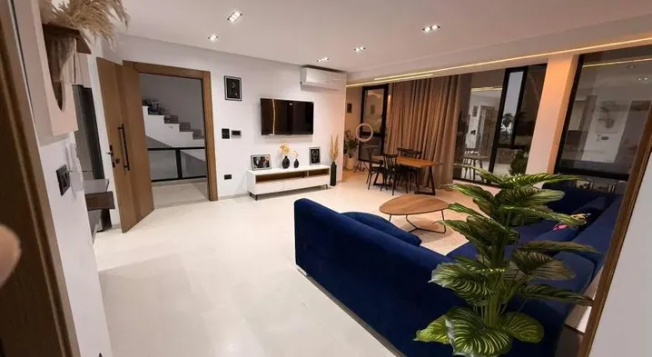 Luxurious apartment with a terrace offering sunset views, family room, and room service in Nabeul, Tunisia.