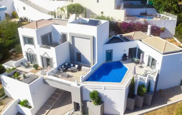 Luxury hotel with private beach, spa, outdoor pool, and exceptional dining options in Lagoa, Portugal.