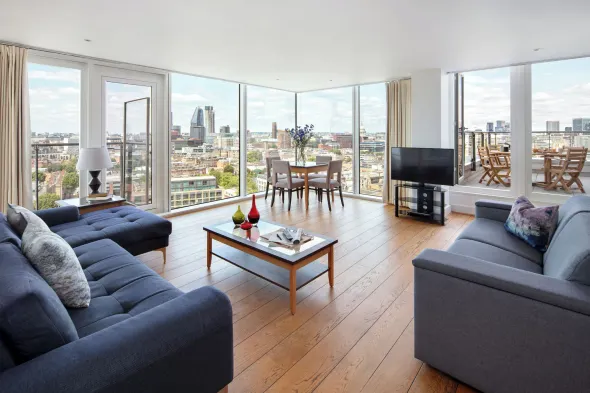 Luxury aparthotel in London with kitchens, 40-inch TVs, and convenient access to Borough Market and The Shard.