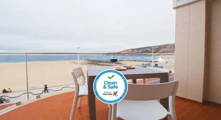 Beachfront hotel with Portuguese cuisine, terrace views, and complimentary Wi-Fi, steps from Nazaré Beach.