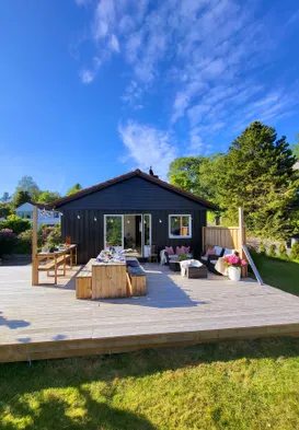 Guest house with hot tub, garden, outdoor fireplace, and free parking in Bergen, Norway.