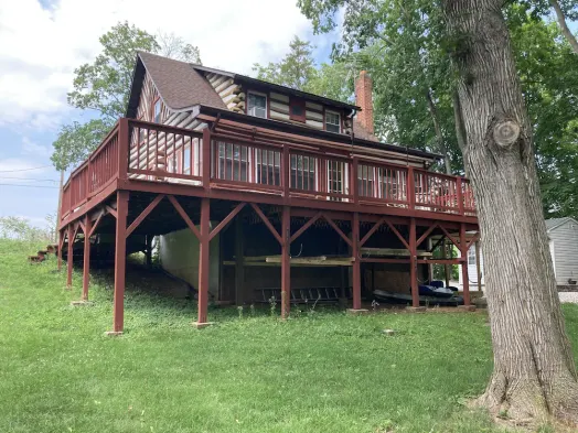 Serene waterfront Log cabin home close to Gettysburg Kayak, fishing and deck