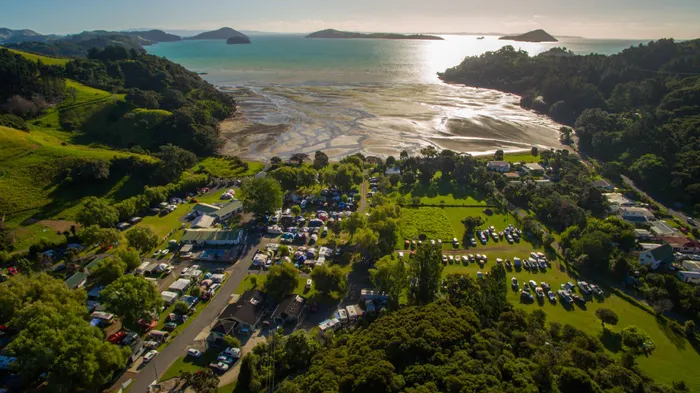 Family-friendly campground with outdoor pool, private beach, and recreational activities near Coromandel's attractions.
