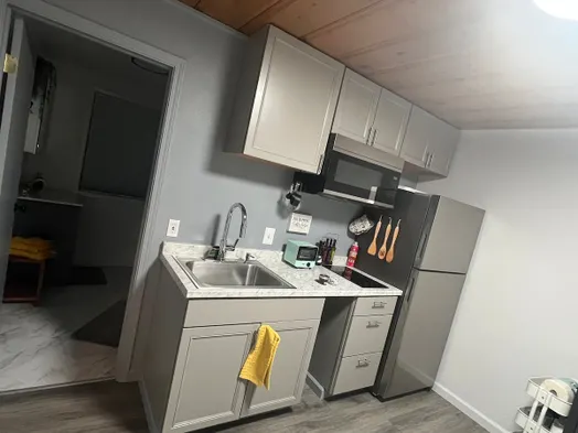 The Black and White Bungalow is a freshly remodeled modern yet rustic studio.
