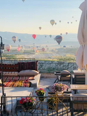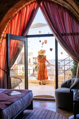 Boutique hotel with stunning views, rooftop terrace, and restaurant near Göreme National Park and Uchisar Castle.