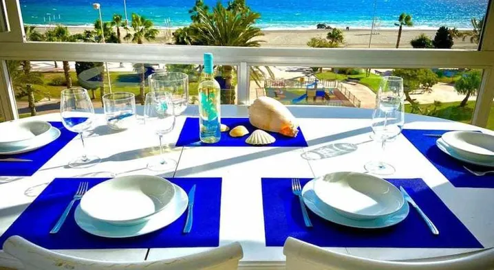 Beachfront hotel with outdoor pool, restaurant, and spa services in Torre del Mar.