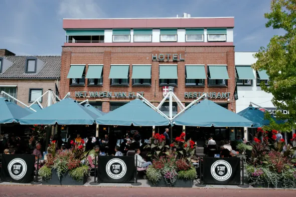 Modern hotel in Ede with a restaurant, banquet facilities, and a terrace for relaxing views.