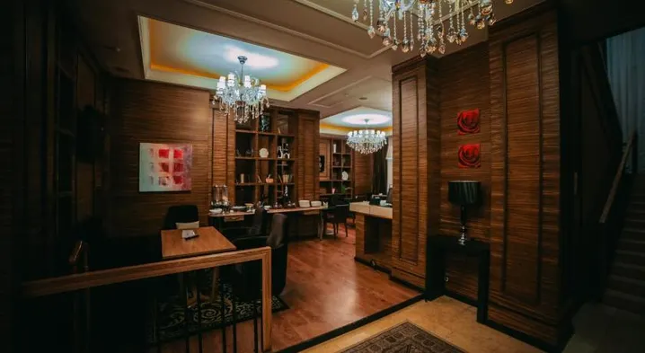 Luxury hotel with spa, indoor pool, and two restaurants, located near Parliament of Kazakhstan and Singing Fountain.
