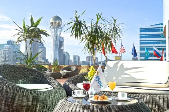 Luxury hotel in the heart of Astana with an indoor pool, spa services, and two restaurants for a relaxing stay.