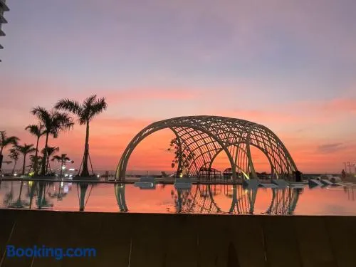 Enjoy a stay with an outdoor pool, sauna, and fitness center at this modern aparthotel in Thu Dau Mot.