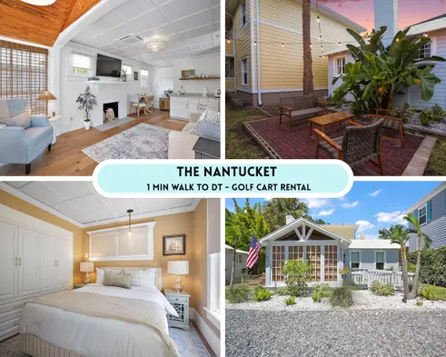 2 min walk to Downtown/KING BED /Golf Cart Rental/Pet Friendly!