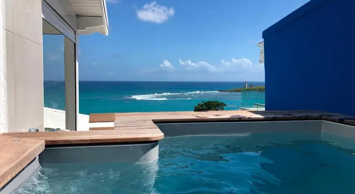 Luxury apartment with outdoor pool, terrace, and stunning waterfront views in Le Gosier.