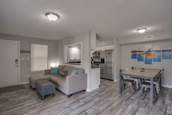 Newly remodeled 2-bedroom condo with full kitchen, laundry service, and pet-friendly accommodations in central Newport News.