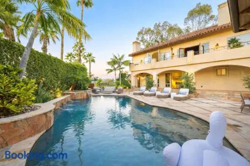 Experience luxury in this 5-star homestay with a swimming pool, garden, and family room in Fairbanks Ranch, California.