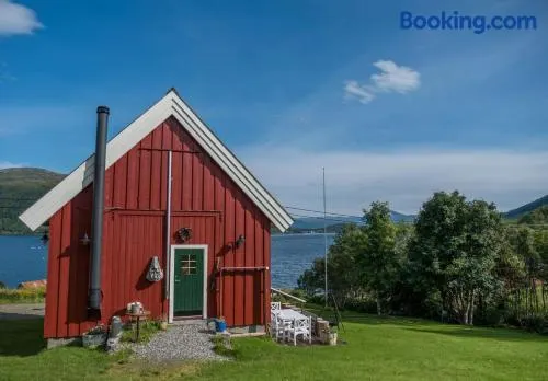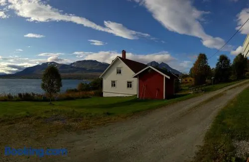 Holiday home with private beach, sauna, and free parking in Kvaloysletta, Tromso. Perfect for families and outdoor activities.