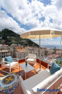 Apartment with sea views, terrace, garden, and free parking, close to Maiori Beach in Minori.