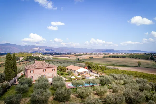 Tuscan Farmhouse among vineyards and olive grows of Cortona countryside