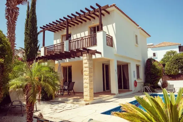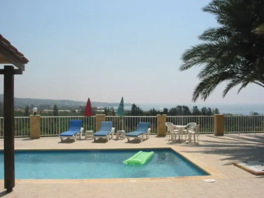 Spacious villa with outdoor pool, garden, and modern amenities near Coral Bay beach.