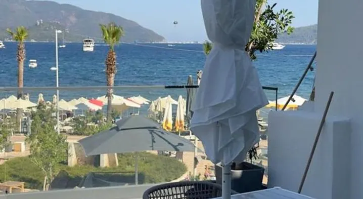Beachfront hotel with private beach access, outdoor pool, and on-site dining in Marmaris.
