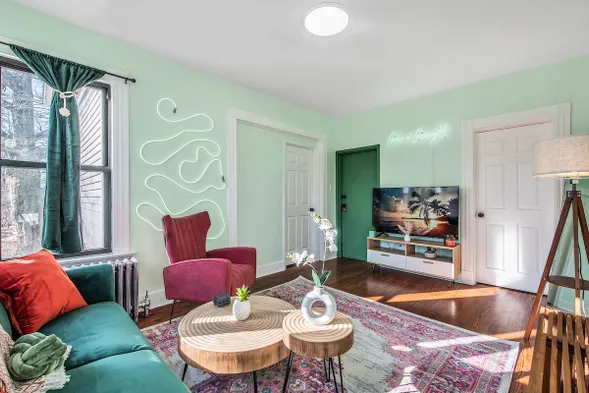 Cozy apartment with a fireplace, air conditioning, and modern amenities in the heart of New Haven's Wooster Square.