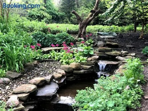 Relax in a charming inn featuring a garden, arcade/game room, and shared kitchen in Kirtland, Ohio.