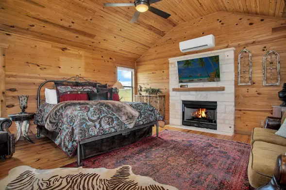 Cedar Bliss Cabin | Rustic 1/1 | King Bed | Kitchenette, Jacuzzi for 2, Ambiance Fireplace + more