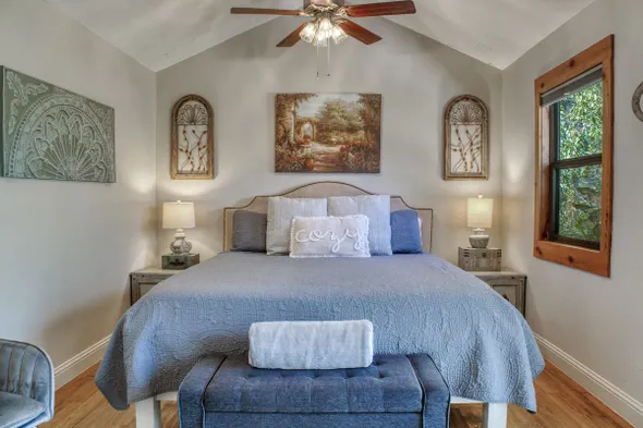 Newly built cabin in Texas Hill Country with hot tub, full kitchen, and adults-only policy for a serene getaway.