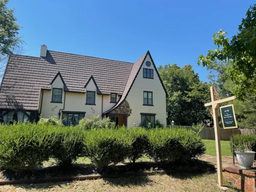Stay in a historic English Tudor home with a cozy queen bed and shared outdoor space in Muskogee.