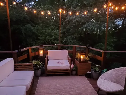 Hot tub with a wooded view