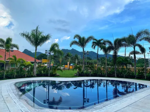 Luxury resort with 3 outdoor swimming pools, spa services, and vegan dining options in Lipa City.