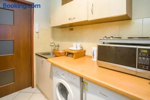 Comfortable accommodation in Warsaw with a shared bathroom, refrigerator, and microwave for a convenient stay.