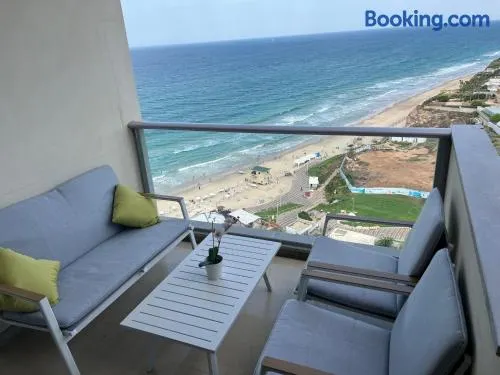 Luxury apartment with sea views, swimming pools, spa services, and a private beach in Herzliya.