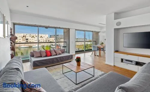 Spacious family apartment with free parking, express check-in, and access to tennis courts and water sports activities.