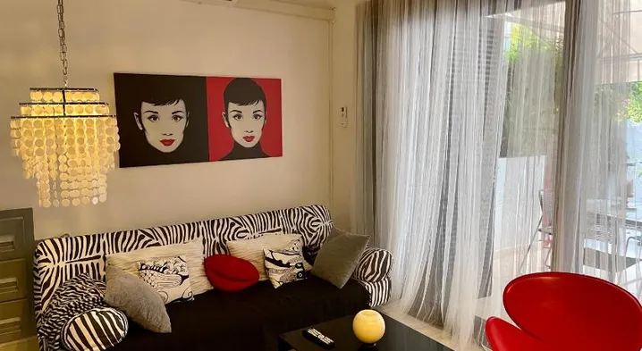 Luxury apartment steps from the beach with two terraces, air conditioning, and a spa & wellness centre.