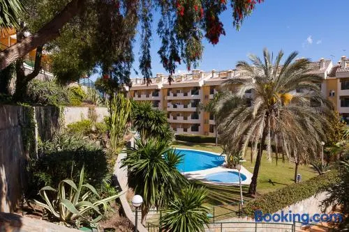 Enjoy a seasonal outdoor pool and modern amenities in the heart of Marbella, just minutes from Puerto Banús Beach.