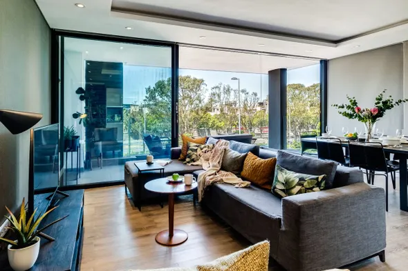 Luxurious apartment in Green Point with ocean and mountain views, daily servicing, and air conditioning.