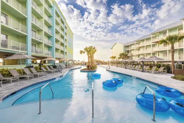 Beachfront hotel with outdoor pool, lazy river, and 24-hour fitness center in Orange Beach.