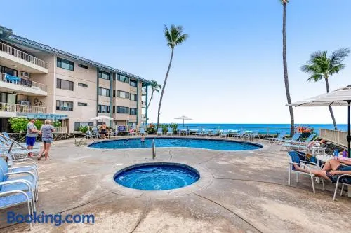 Enjoy a golf getaway in this spacious condo with an outdoor pool and tennis courts in Kailua-Kona.
