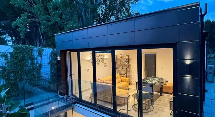 Luxurious studio suite with 2 double beds, keyless entry, free parking, and high-speed Wi-Fi in Ilford's city center.