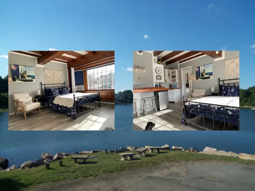 Quirky room above convenience store, near water.