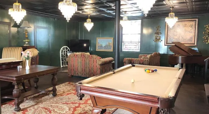 Unique 1800's church vacation home with a spacious chef's kitchen and billiards, perfect for family gatherings.