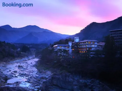 Relax in a family-friendly ryokan with hot springs, an outdoor pool, karaoke, and free Wi-Fi in Nikko, Japan.
