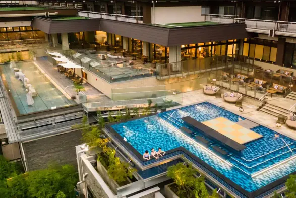 Relax in a spa hotel featuring 11 indoor and outdoor swimming pools, hot springs, and a variety of dining options.