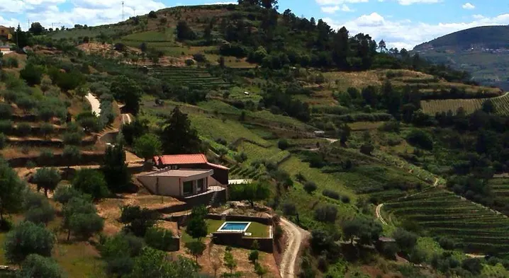Luxury hotel with outdoor pool, tennis courts, and stunning river views in Pinhao, Portugal.