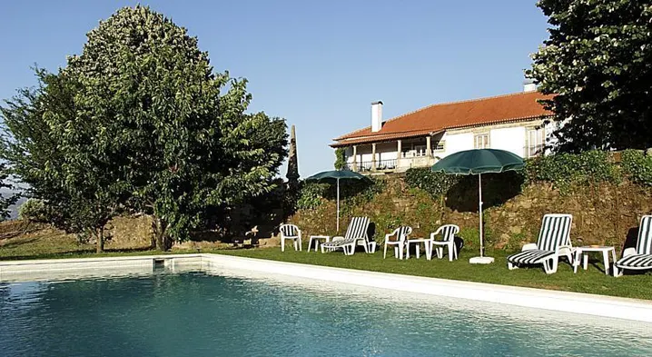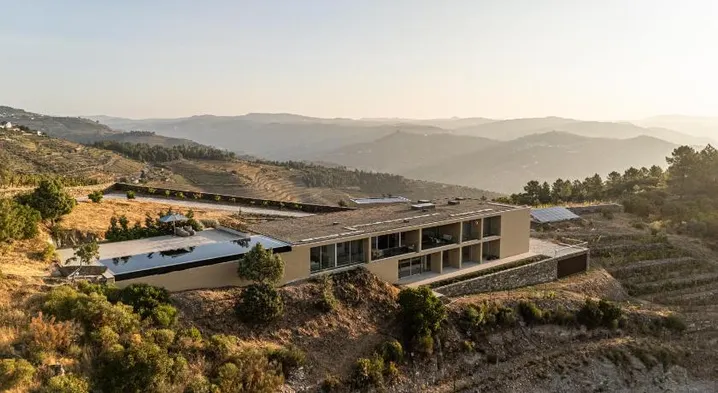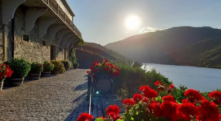 Luxury hotel with outdoor pool, tennis courts, and stunning river views in Pinhao, Portugal.